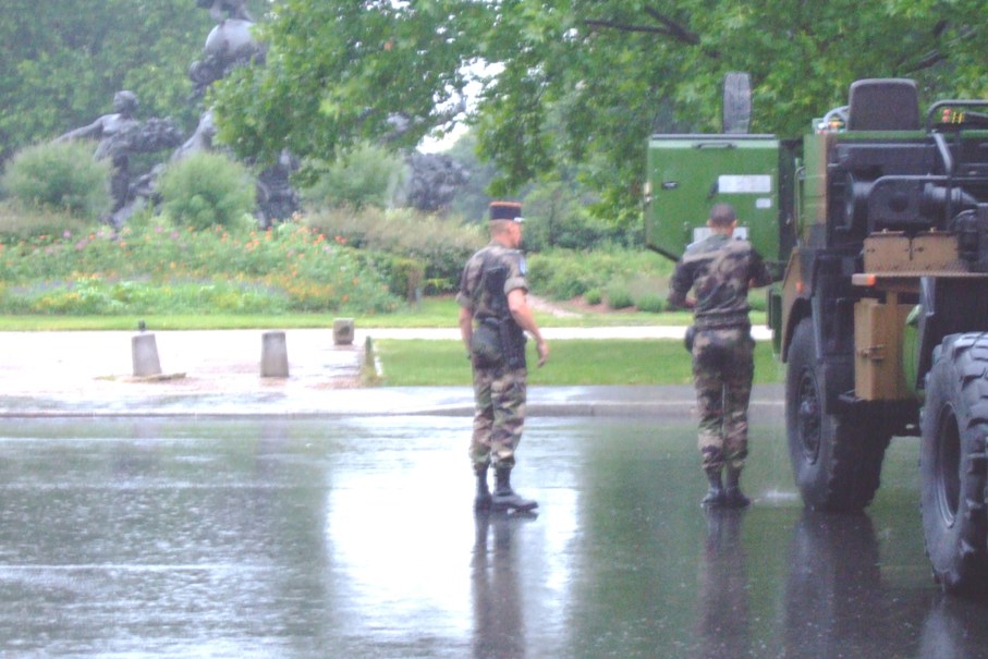 101-102. Rain at Voltaire boulevard. 103-105. Wet NATO army at Nations square.