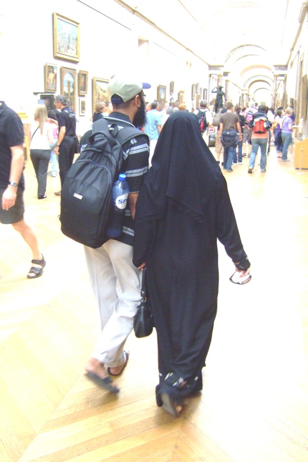 108. Louvre view from Seine river bus. 109. Exit to Louvre. 110. Moslems.