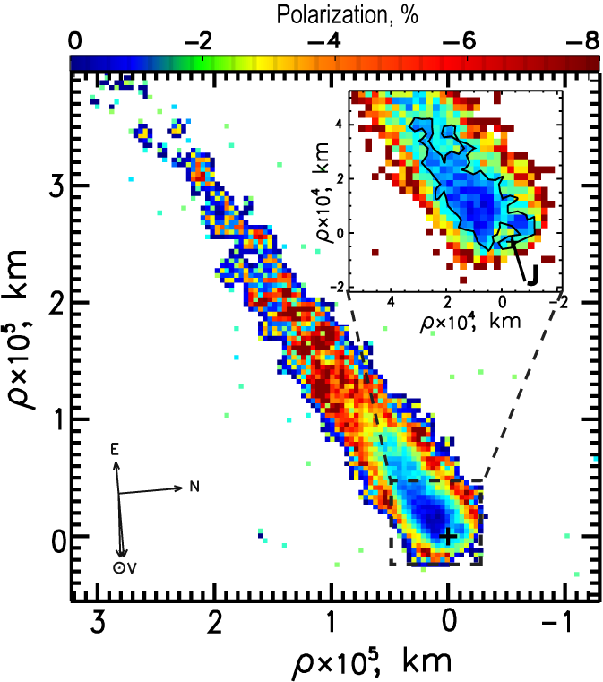 Fig.2. Distribution of linear polarization degree over the comet C/2014 A4 (SONEAR) coma derived through the R filter. |