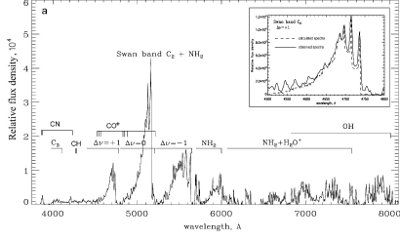 наблюдения кометы показали наличие богатого эмиссионного спектра; нам